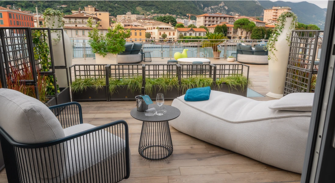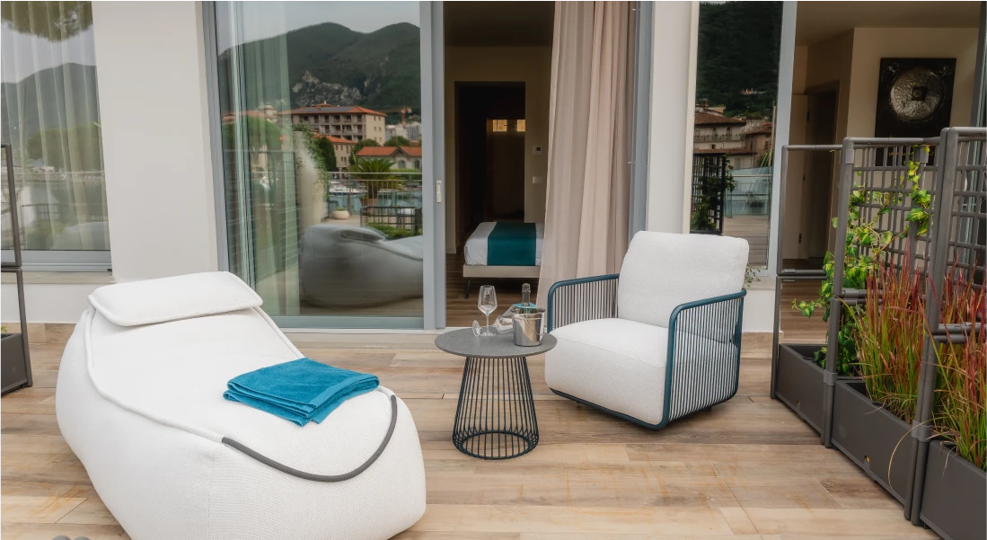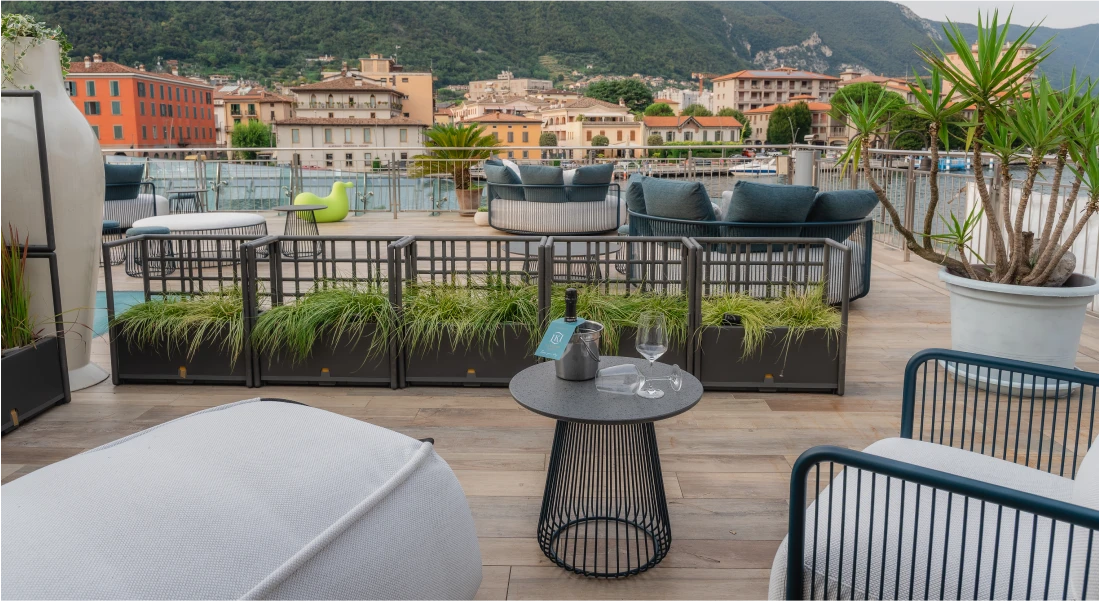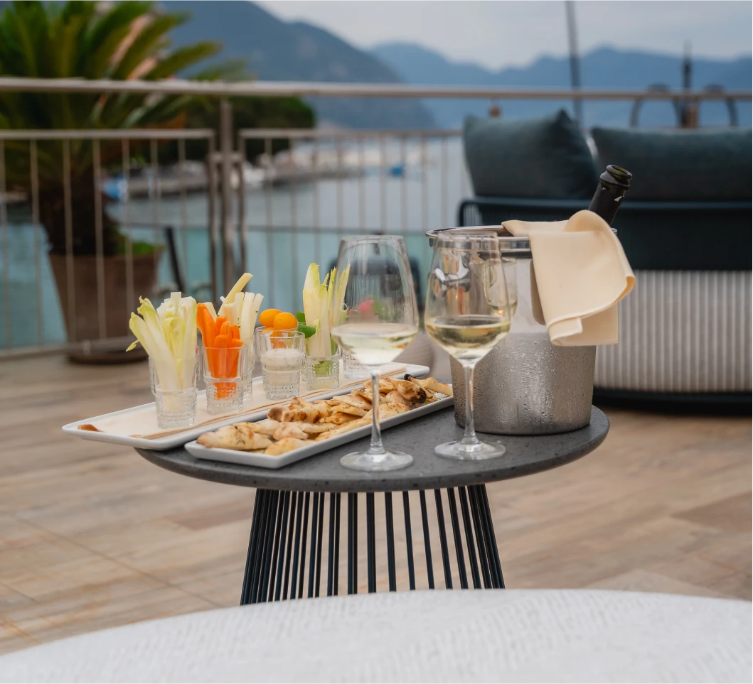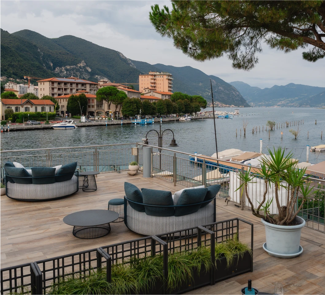 Lo sguardo si perde dalla terrazza vista lago e nei nostri arredi ricercati