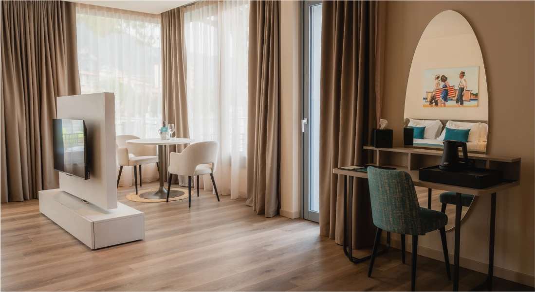 Le sei camere di LKL, tutte affacciate sul lago e dotate di balcone privato, sono state progettate per offrire un soggiorno che unisca intimità, bellezza e funzionalità. La nostra suite angolare, con doppio affaccio sul lago, offre una prospettiva ancora più emozionante. Ogni ambiente è frutto di una ricerca accurata: materiali naturali, tessuti morbidi, arredi dai colori ispirati alla natura circostante. Il risultato? Camere che trasmettono equilibrio, armonia e senso di benessere. Tutti i comfort sono pensati per farvi sentire a casa ma con qualcosa in più: un’accoglienza attenta, dettagli curati e la possibilità di personalizzare il soggiorno con servizi su misura o esperienze selezionate.